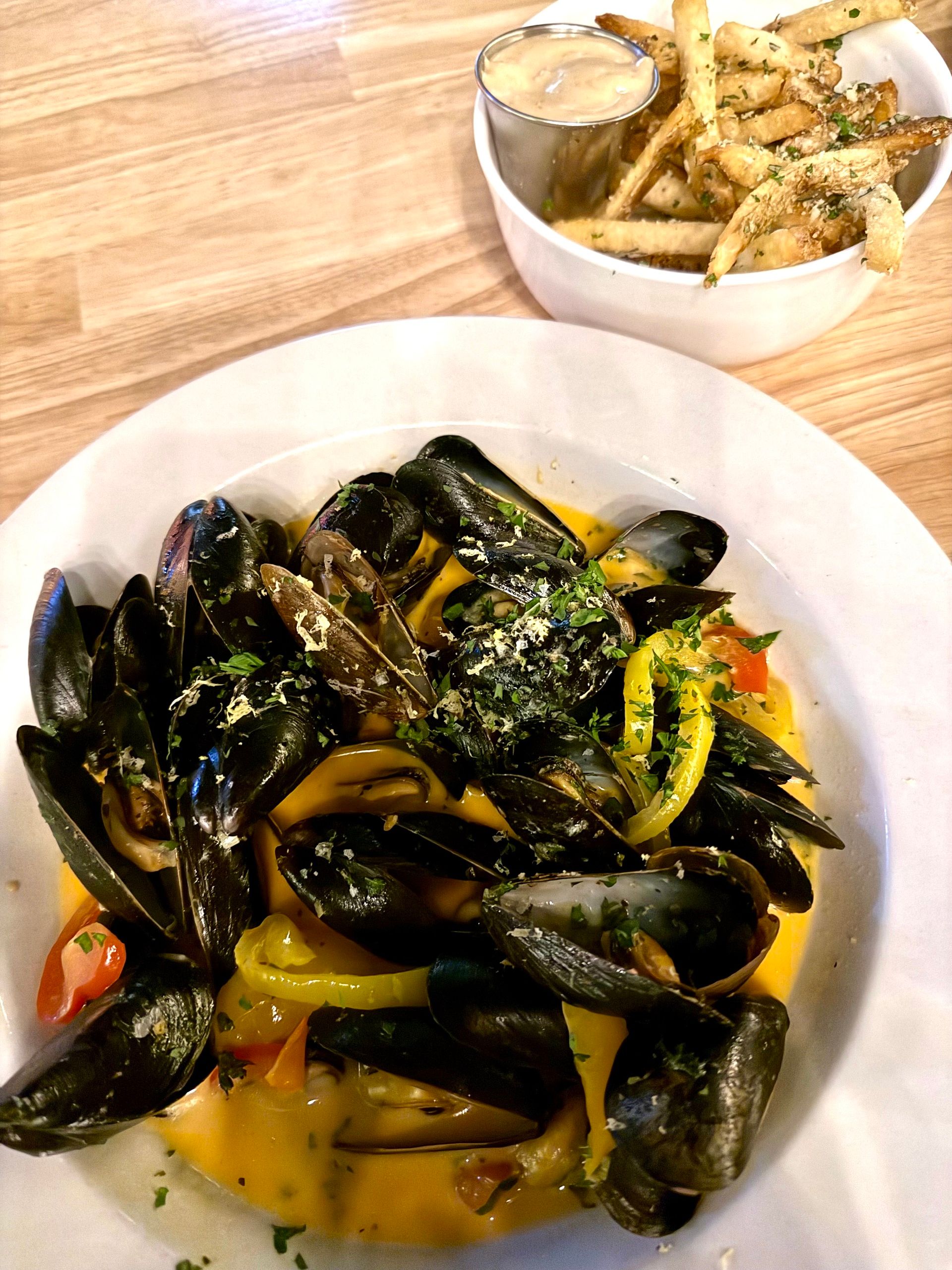 In spite of Pasta Night, I promptly ignored the special and ordered the Moules Frites instead. A very generous bowl of mussels in a white wine, butter, garlic, shallot and herb broth, with tomato, peppers and fennel giving it a distinctive twist. Add a mountain of hand-cut fries and a dangerously good garlic aioli…I tried (and failed) to pace myself.